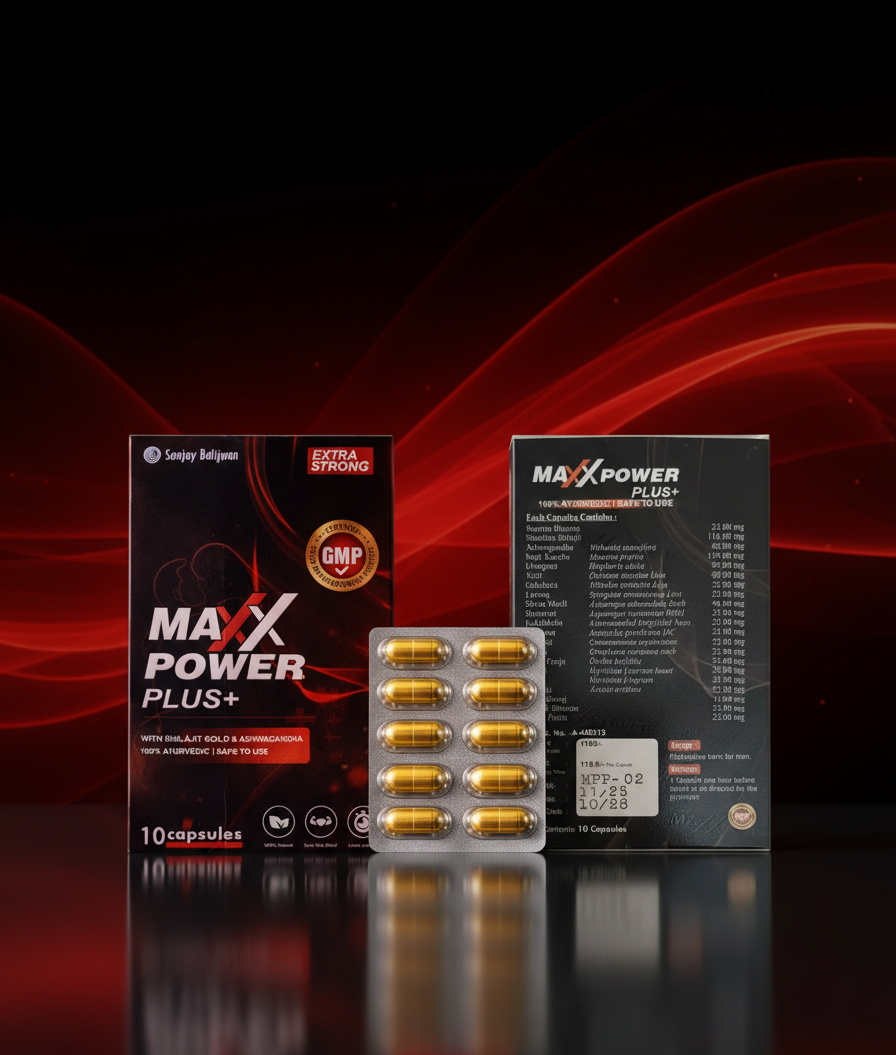 Maxx Power is a premium Ayurvedic supplement designed to support healthy male vitality, energy, and stamina naturally. Formulated with 21 time-tested herbs like Shilajit, Ashwagandha, Swarna Bhasma, and Safed Musli, Maxx Power helps you feel your best when it matters most.